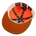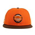 The Chicago Cubs 59FIFTY Fitted hat features an embroidered bear at the front panels with a Wrigley Field patch at the right-wear side. Additional details include a matching color batter man, walnut brim and a rust orange undervisor.
