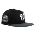 The Washington Nationals 59FIFTY fitted hat features an embroidered W logo at the front panels with a RFK stadium side patch at the right-wear side. Additional details include a matching color batter man at the rear, charcoal brim and sky blue under visor.