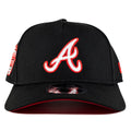 The Atlanta Braves 2005 All-Star game side patch 9Forty M-Crown A Frame snapback features an embroidered Braves logo at the front panels with a matching MLB batterman logo at the rear, a 2005 ASG patch at the right-wear side, and a red under visor.