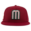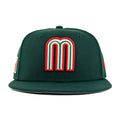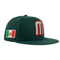 The Mexico 59FIFTY fitted Cap features an embroidered M logo at the front panels with a Mexico flag side patch at the right-wear side. Additional details mexico logo at the rear and a grey undervisor.