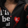 Every piece tells a story. "I'll be at the bank" isn't about money, more so manifestation of what you want. The RL heart floating away with the girl reaching is you reaching towards your goal. You know it's in hand's reach at all time. The back is the proof. Completely different energy from the front. The front is hopeful, faith, inspirational. The back is the cockiness. "I told you I'll do it."