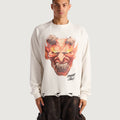 Screenprinted front graphic. Soft, waffle texture long sleeve. Raw hem. Ribbed collar and cuffs