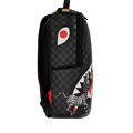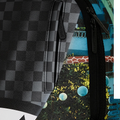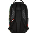 Dimensions: 18" x 6" x 11.5" • Front zipper pocket • Side pockets • Zippered Stash pocket • Separate velour sunglass compartment • Ergonomic mesh back padding • Adjustable Straps for custom sizing • Gold zippers with metal hardware • Metal "Sprayground Authentic" badge • Slide through back sleeve connects to carry-on luggage to free your hands